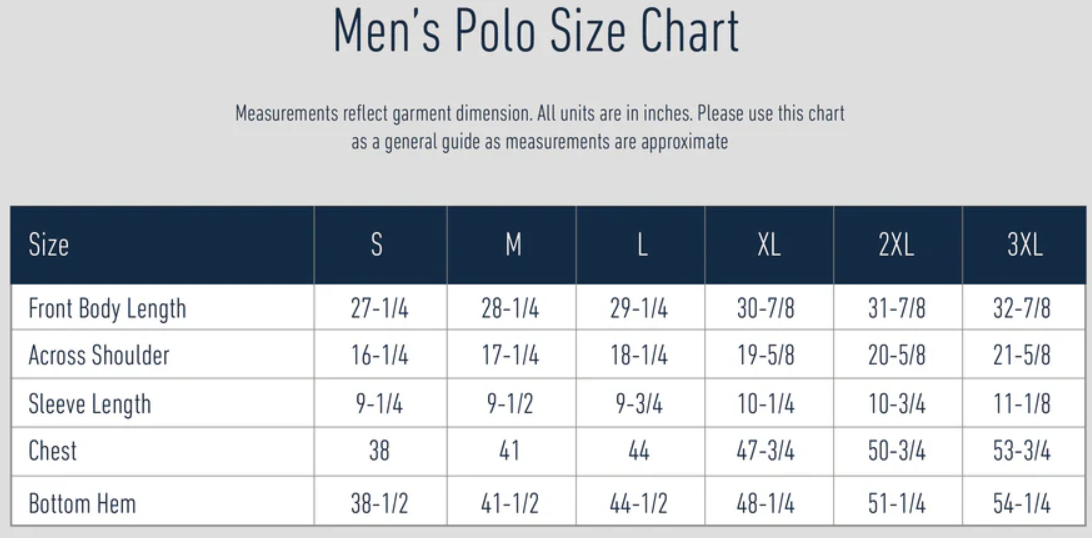 Polo Sizing Chart