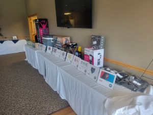 Gift for each registered golfer. Raffle prizes include gift cards, sports memorbilia, golf accessories, electronics, and other items.